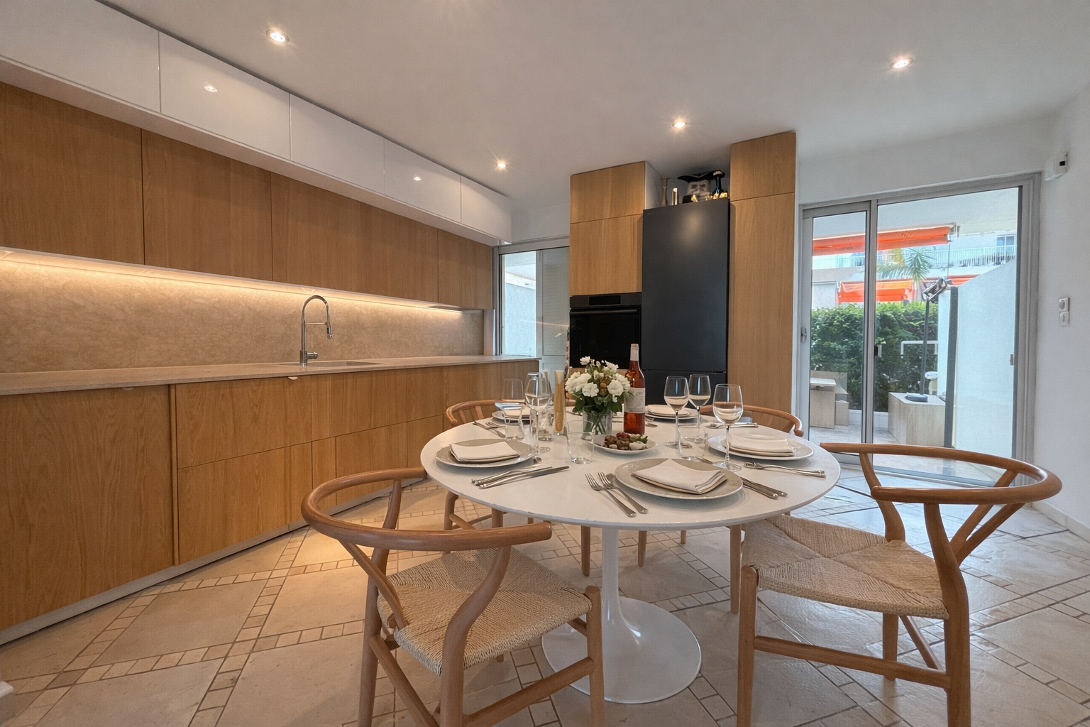 À proximité du Cheval Blanc et de la plage de la Bouillabaisse, à environ 1 200 mètres du port de Saint-Tropez, cet appartement d’environ 80 m² offre un véritable esprit maison de village.